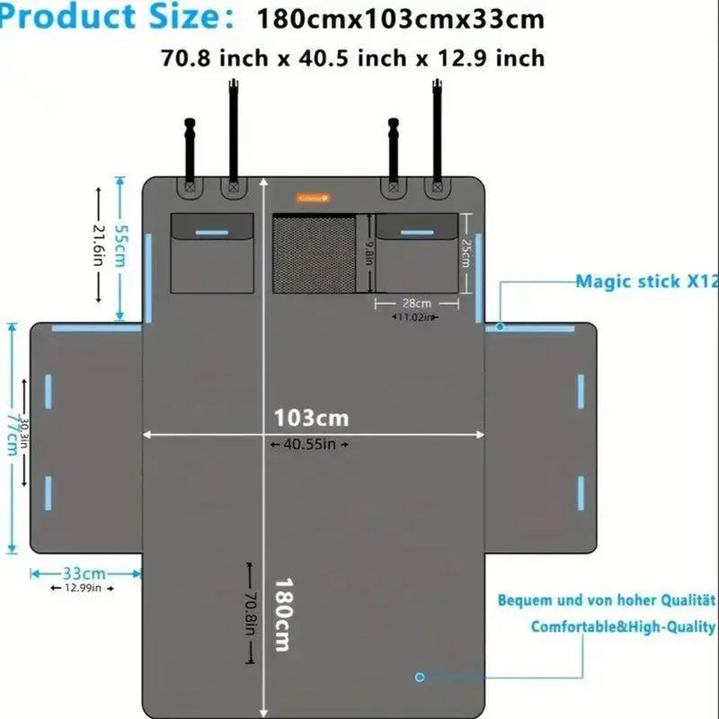 Universal size (180 x 103 cm) for SUV, sedan or minivan