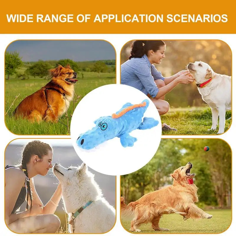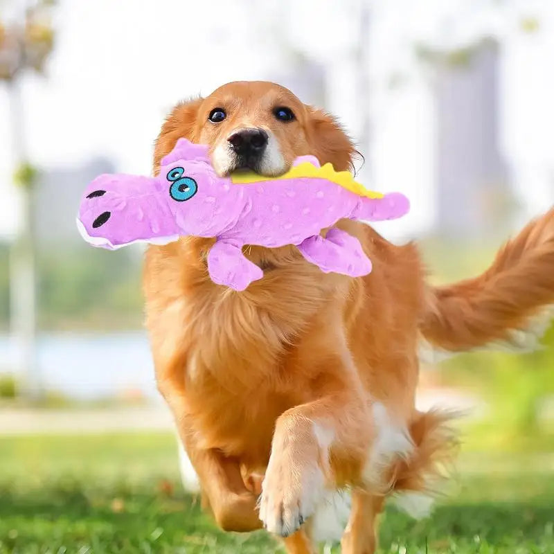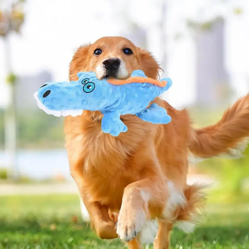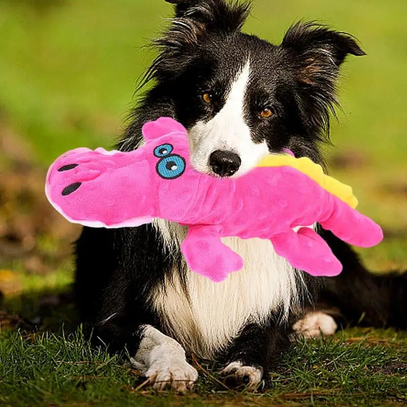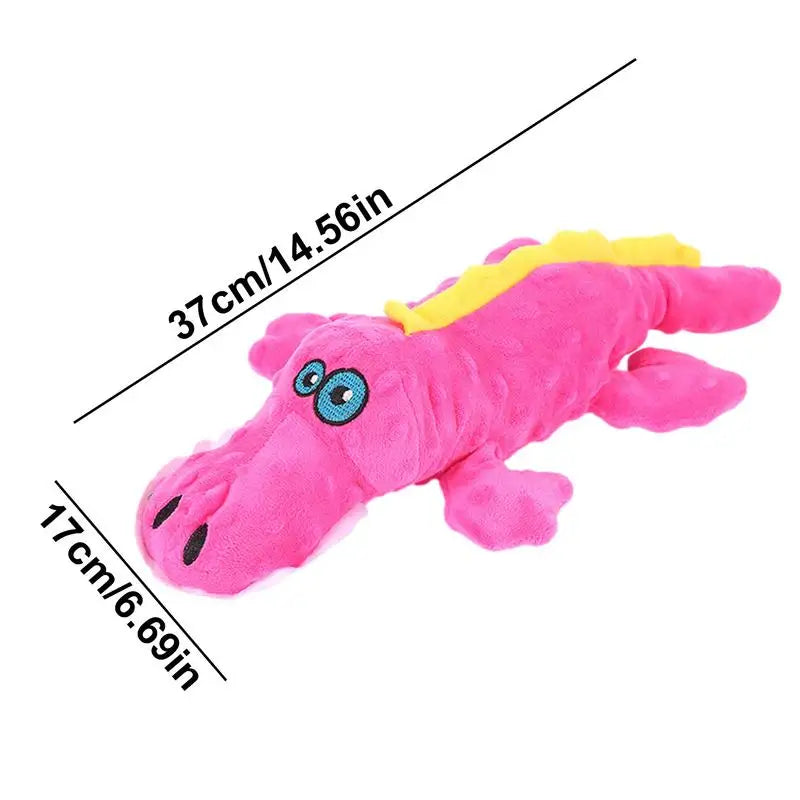 Imagine your dog, happy as ever, gently nibbling on this soft crocodile, ears pricked up with every joyful squeak .