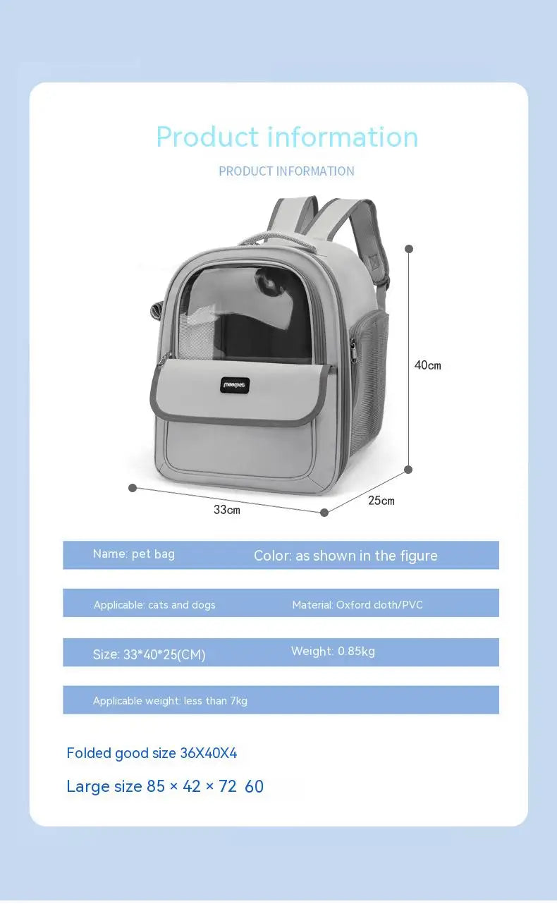 Pet Carrier Backpack, Pet Travel Bag, Portable, Breathable, Dog, Trans